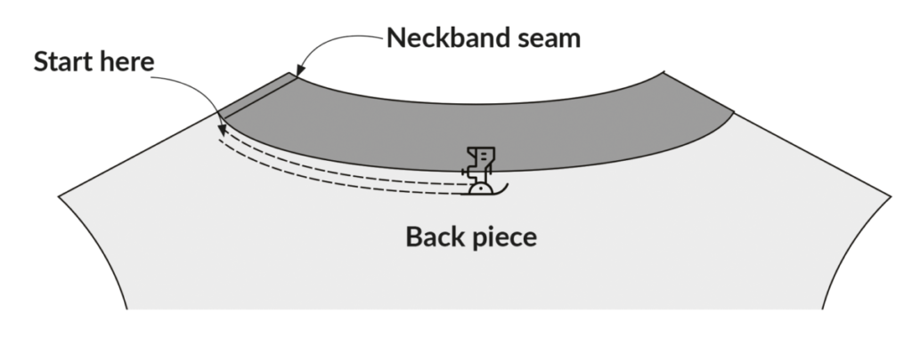 - To avoid a bulky intersection of seams at the shoulder, move the neckband seam a couple of centimetres (less than an inch) towards the back.
