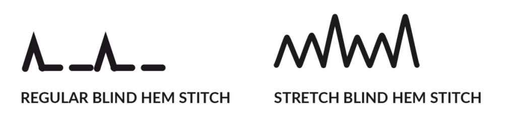 A machine blind hem is a stitch that combines a straight stitch or a narrow zigzag stitch with a wide zigzag in even intervals. The wide zigzag catches the inside of the fabric, ideally just a thread, and this will secure the seam while also being practically invisible on the outside.
